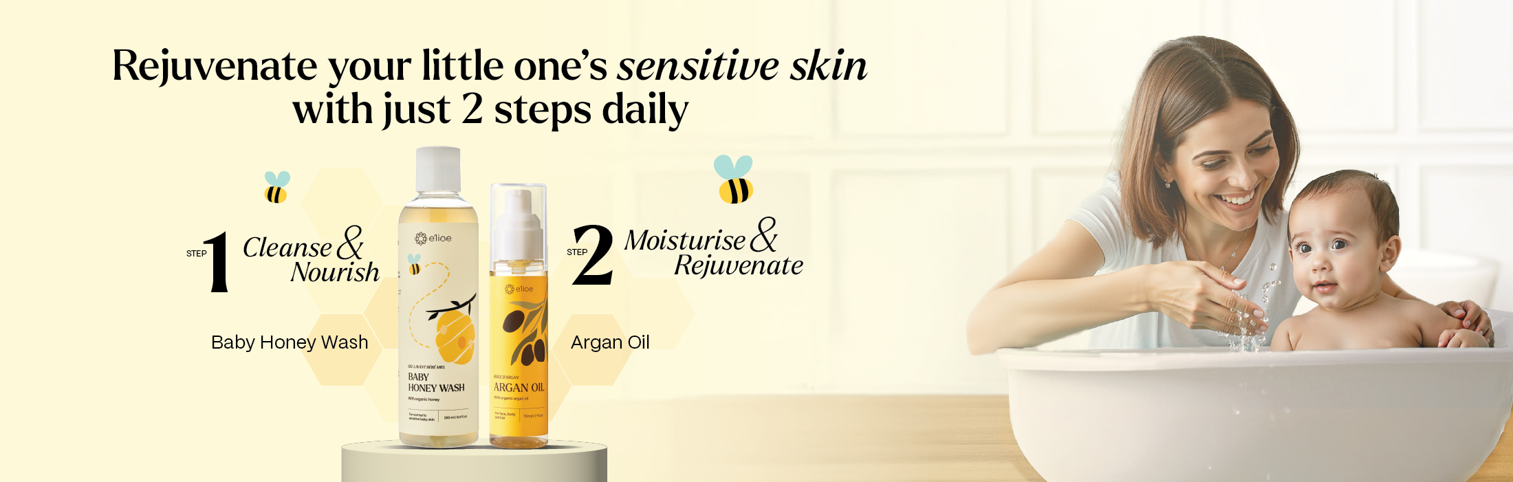 Baby Honey Wash and Argan Oil (Purity) are your gentle essentials for little ones with normal to sensitive skin.