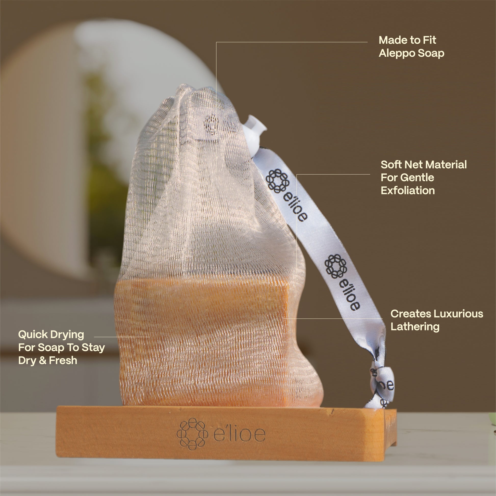Elevate your Aleppo soap experience with our gentle foaming net. This soft net creates a luxurious, cleansing lather, making every wash a soothing and rejuvenating experience.